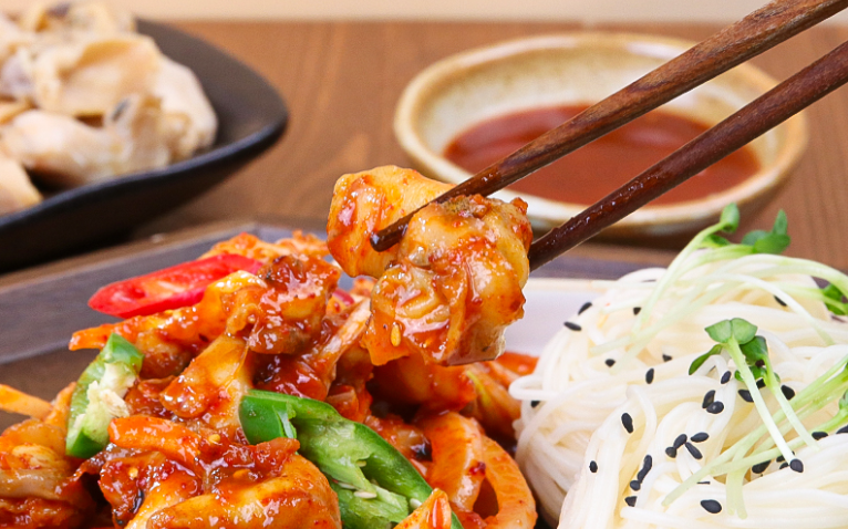 새콤매콤한 양념에 쫄깃한 골뱅이의 찰떡 조화!