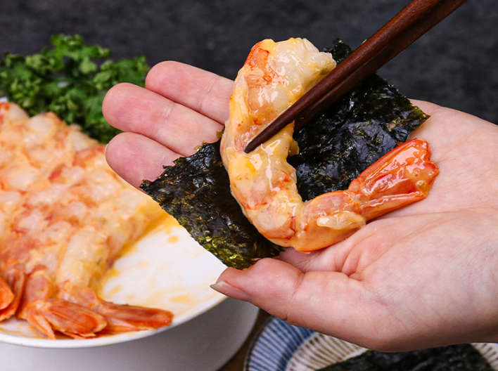홍새우에 스리라차 마요 소스 그리고 고소한 김까지 풀세트로!