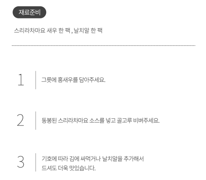 매콤 고소한 스리라차소스와, 탱글한 새우의 조합